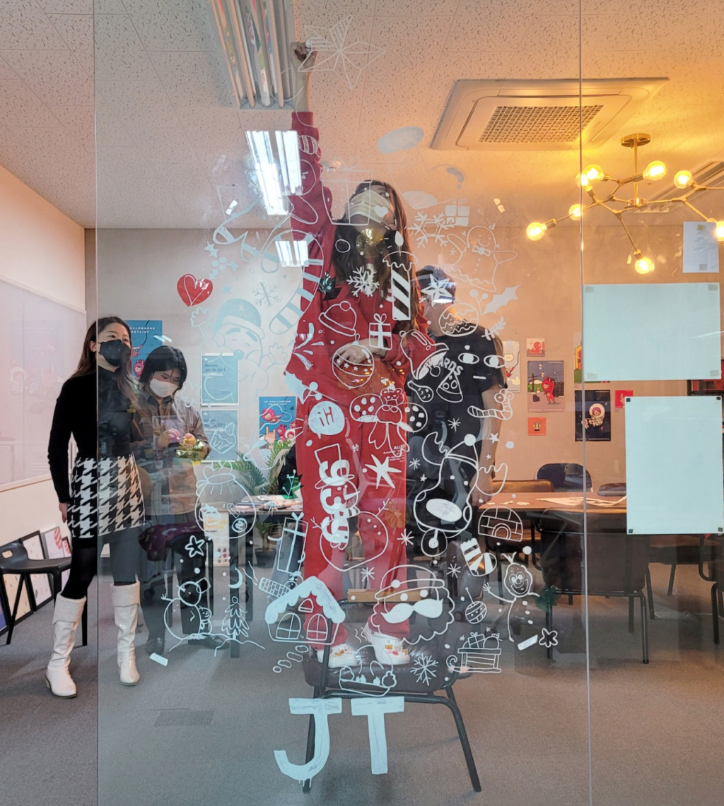 아트팀의 깜짝 이벤트 '크리스마스 벽화 그리기'