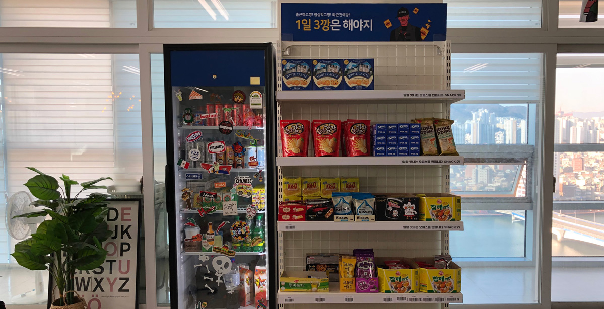 JT스낵바는 매달 SNACK24에서 정기적으로 상품을 받아 JT스낵바에 채워두고 있습니다. 스낵, 음료, 간편식 등 수백 가지 상품을 랜덤하게 주문할 수도 있고, 직원들의 의견을 모아 JT만의 상품을 선택해 주문 할 수도 있어 모두의 입맛을 만족하게 할 수 있습니다. ?????