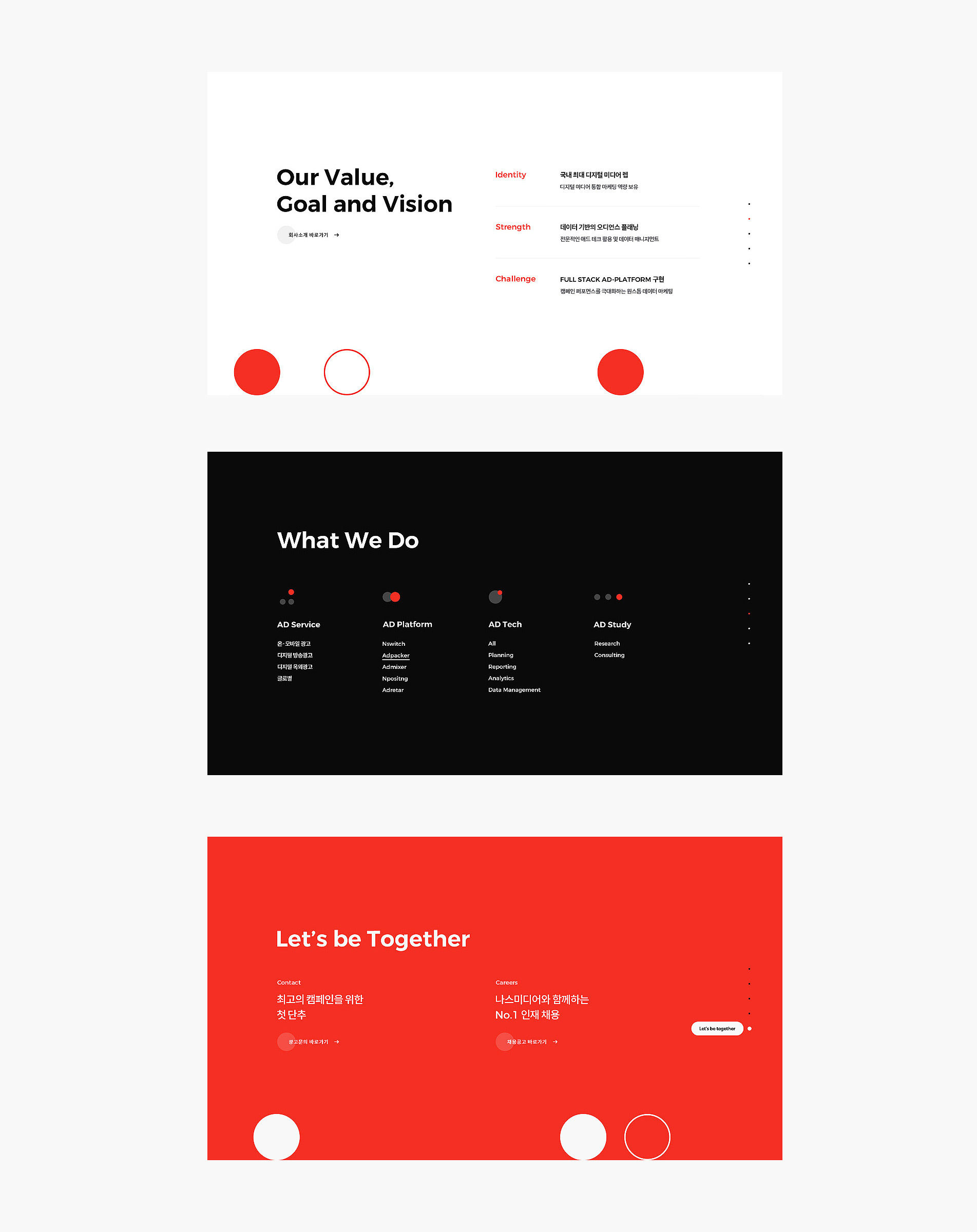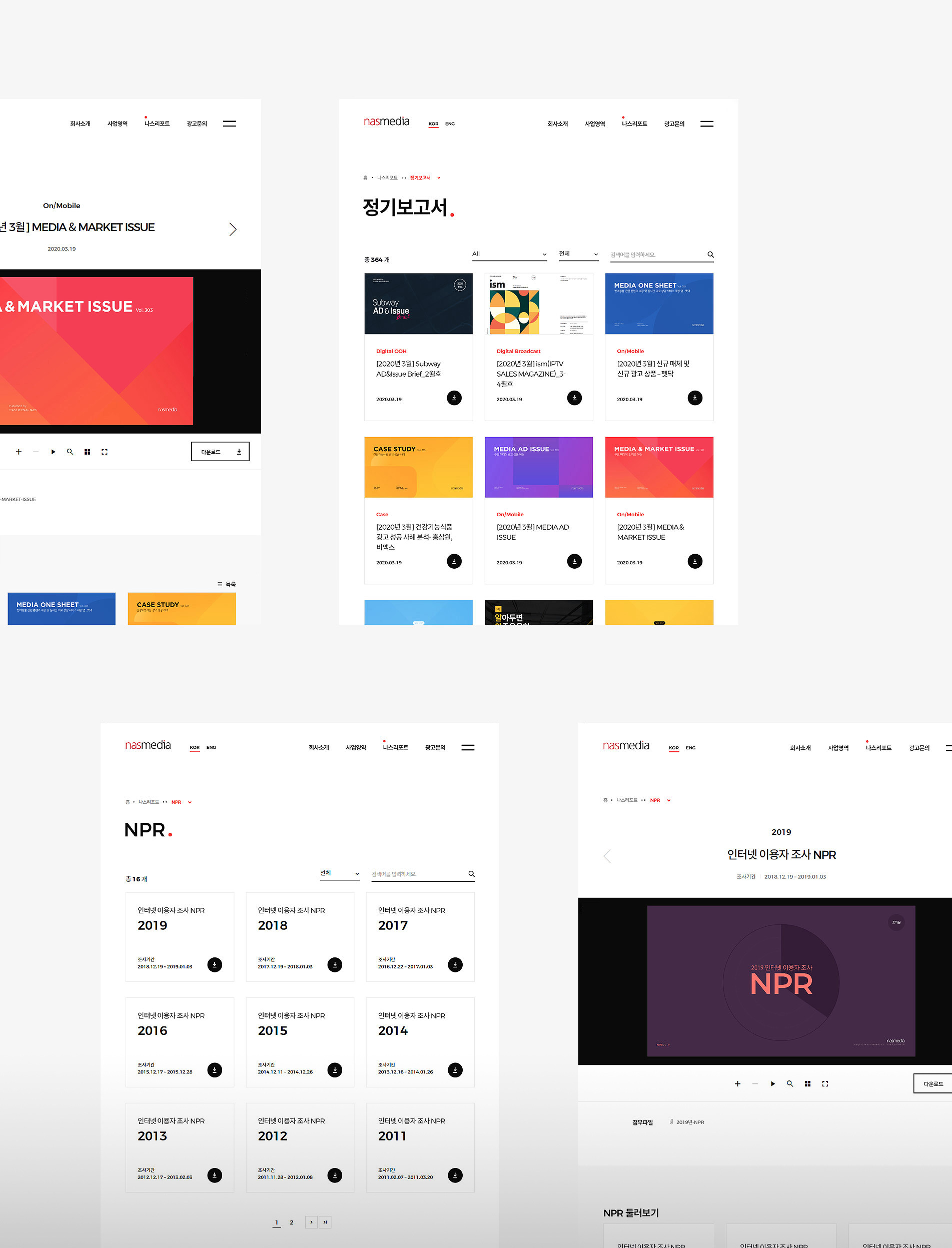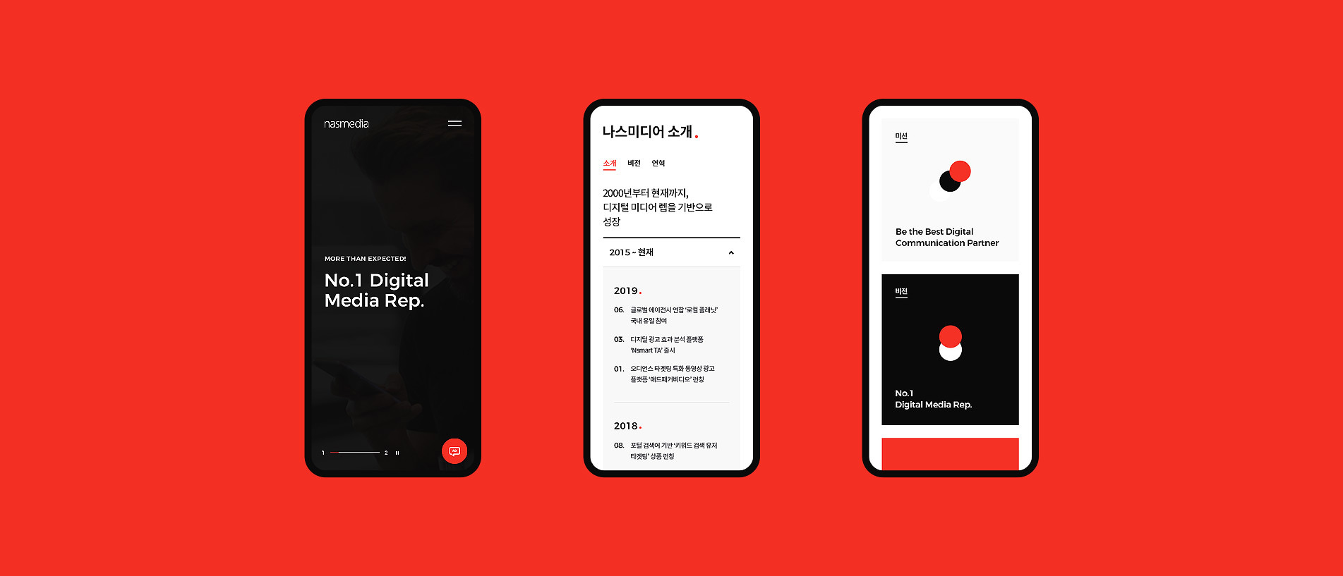 나스미디어가 가진 브랜드 아이덴티티를 극대화 시킬 수 있도록 그래픽 요소를 적극 활용하였고,