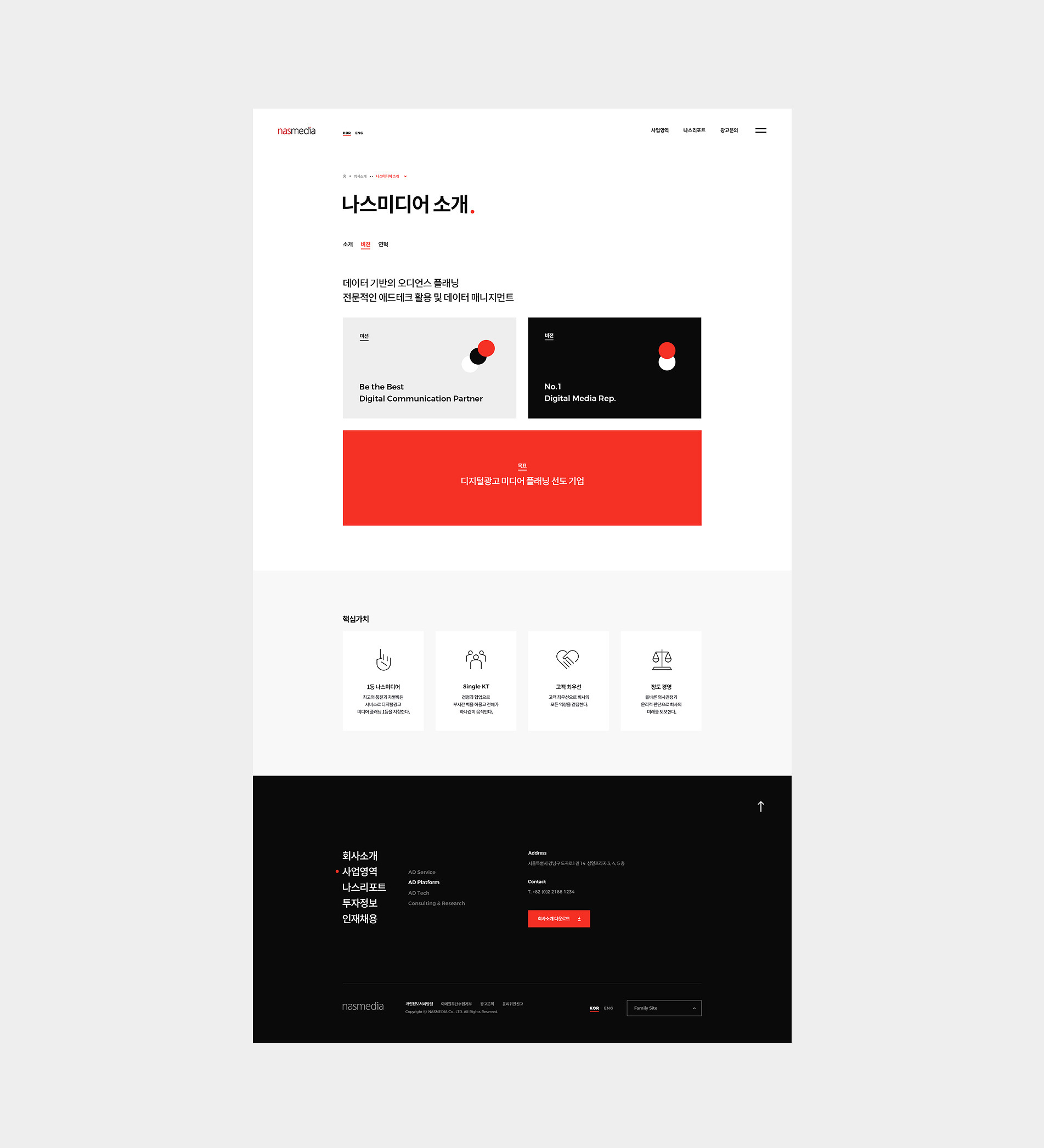최고의 성과를 위해 끊임없이 진화하는 나스미디어의 목적에 맞게 구성되었으며,