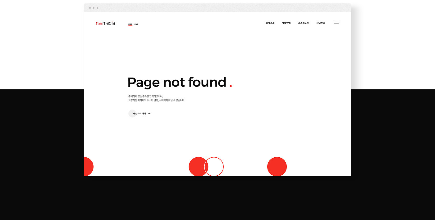 맞춤 제작 404페이지로 에러페이지에 대한 방문자의 스트레스와 이탈률을 줄였습니다.