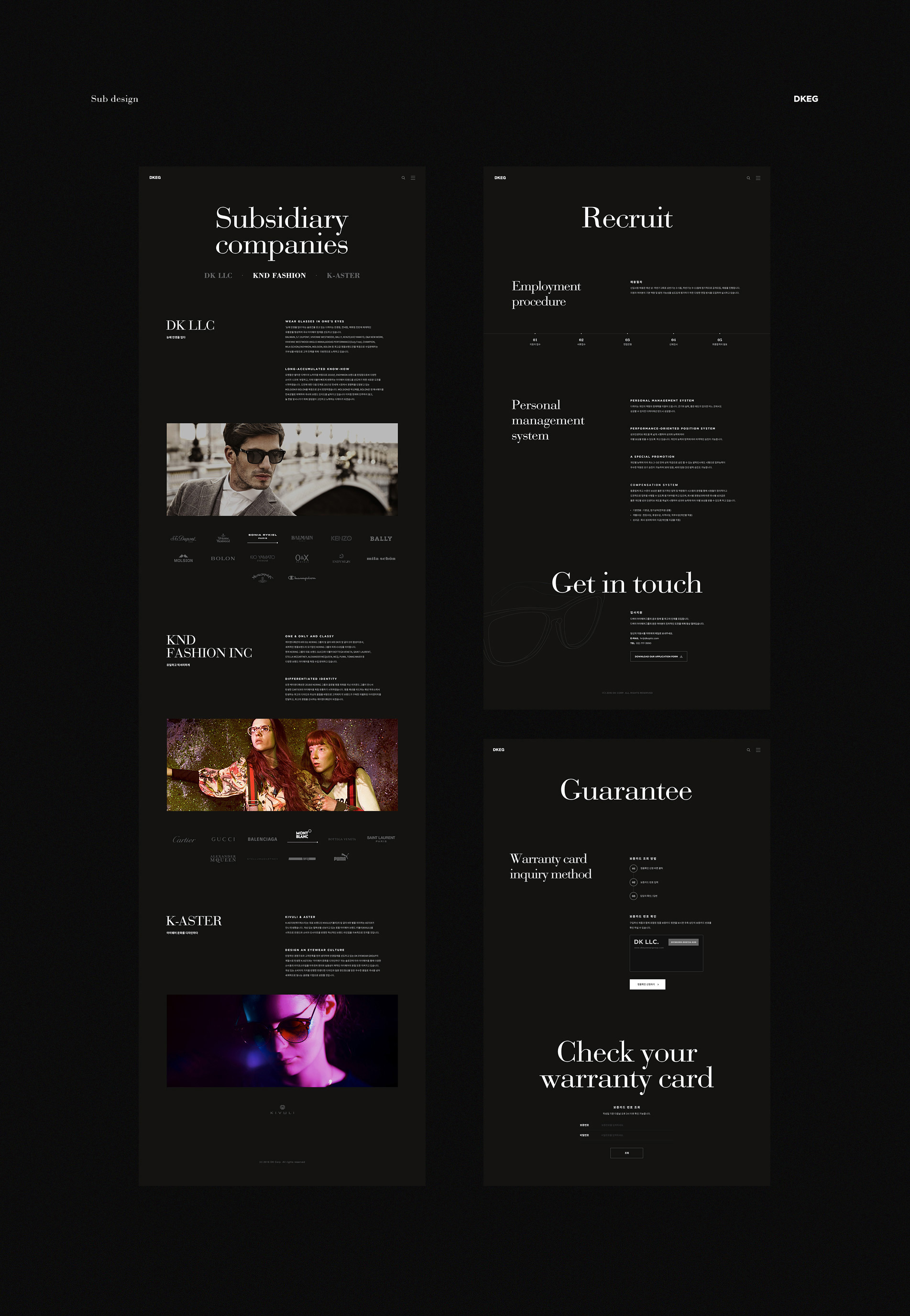 블랙 배경위에 화이트 컬러의 텍스트를 사용해 서체의 주목도를 높히고 고급스러우면서 가볍지 않은 느낌을 주었습니다.