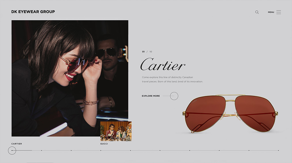 넓은 그리드를 사용해 여백을 충분히 주었으며, 제품 와이어프레임을 장식요소로 사용하여 제품에 대한 집중도를 높혔습니다. 큼직큼직한 비주얼 사진들과 부드럽고 다양한 모션으로 트렌디한 분위기를 연출 하였습니다.