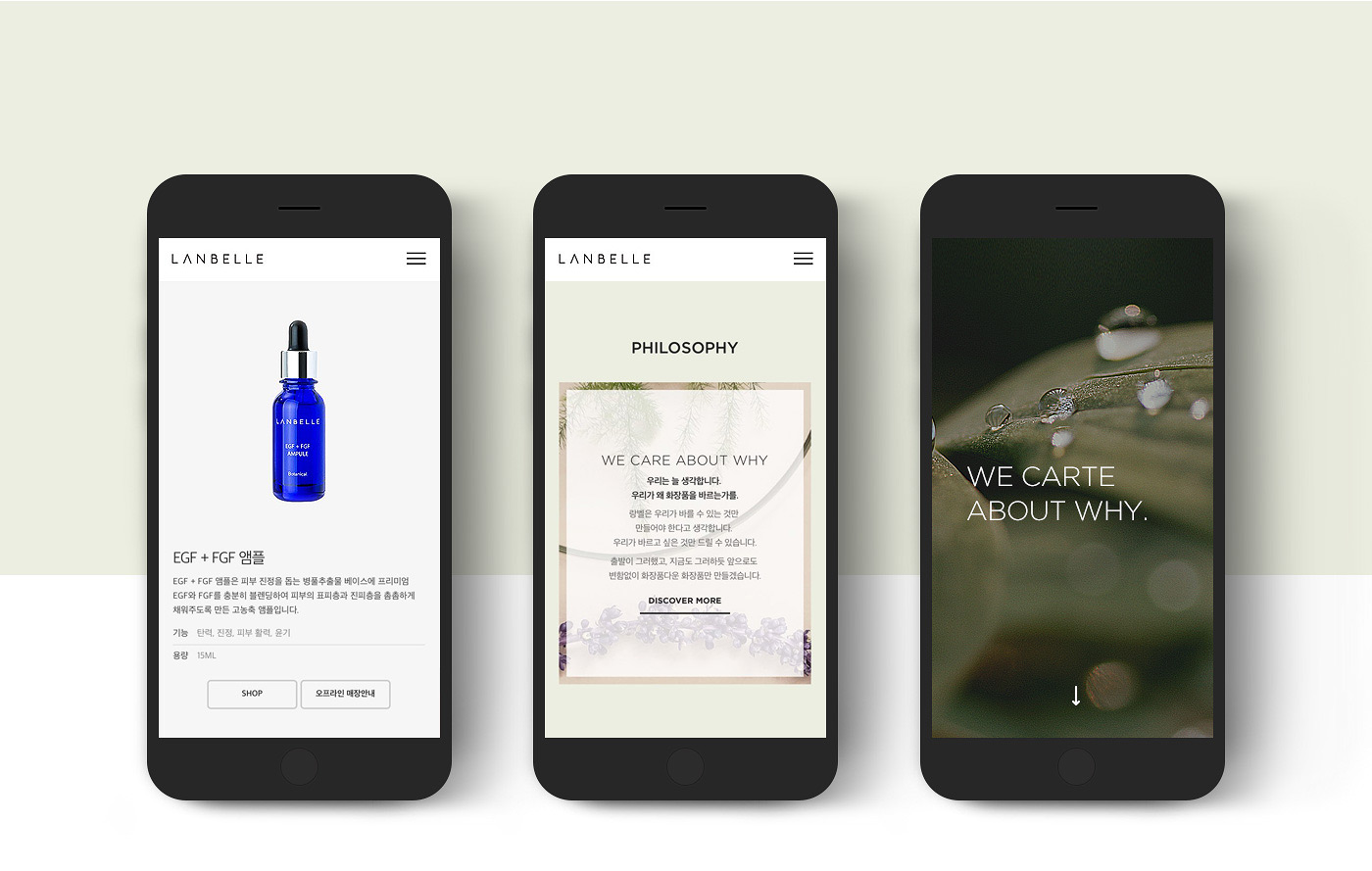 그리드를 깨고 비대칭을 활용한 레이아웃을 사용한 디자인은 기존의 화장품의 틀을 깬다는 의미로써