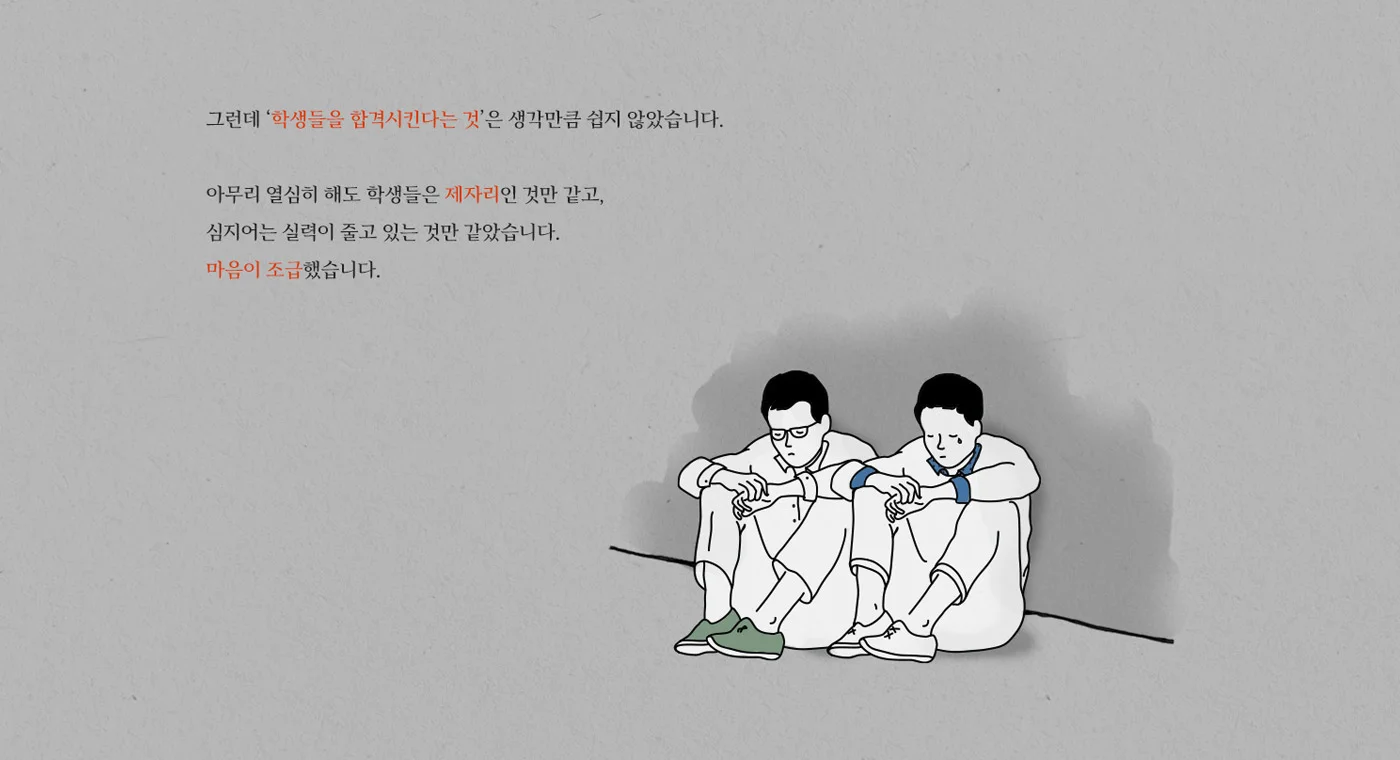 재수생 출신이면서 서울대 졸업생인 강사진의 리얼 스토리를 직접 드로잉을 하여 제작하여