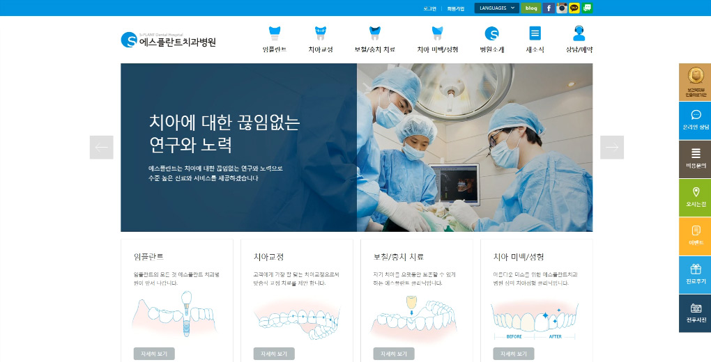 에스플란트 치과 병원의 국문,영문,중문,노문등 4개 국어로 이루어진 반응형 웹사이트는