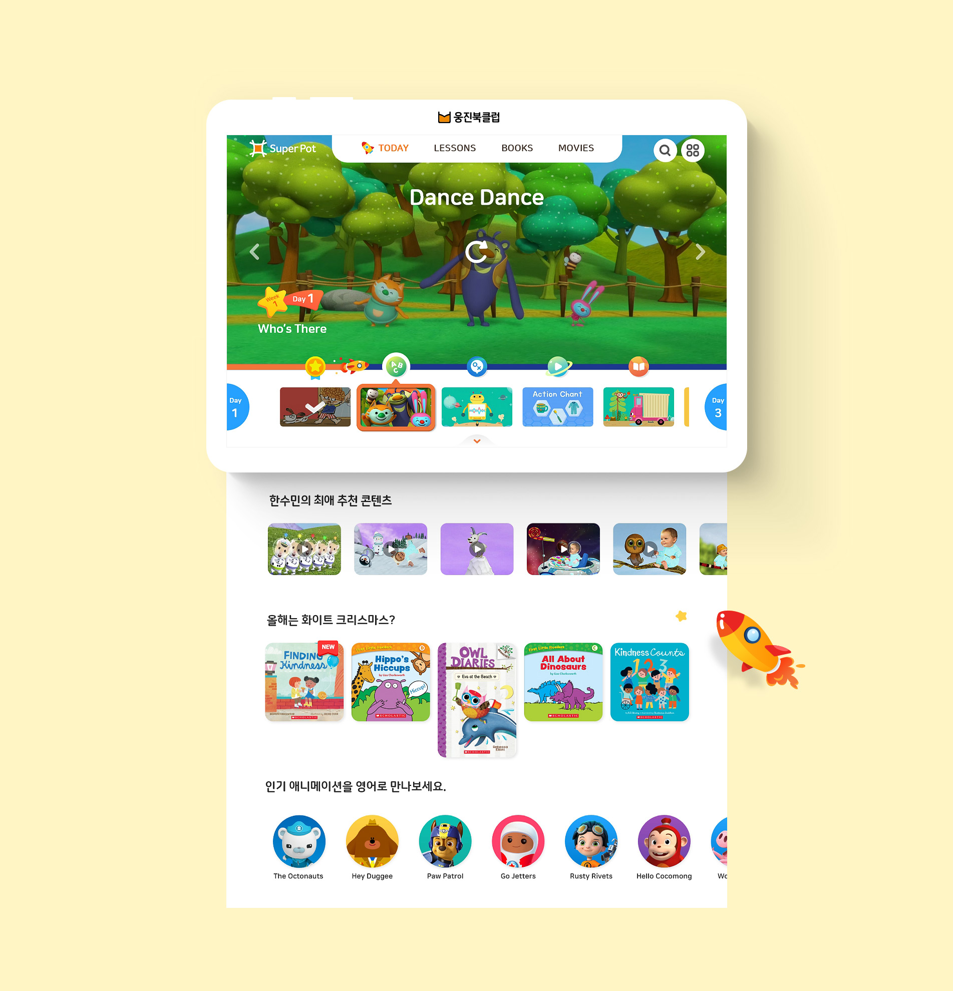 사용자가 탐험대가 되어 도서행성, 노래행성, 퀴즈행성등 차례로 탐험하며 신나는 하루를 보내봐요!