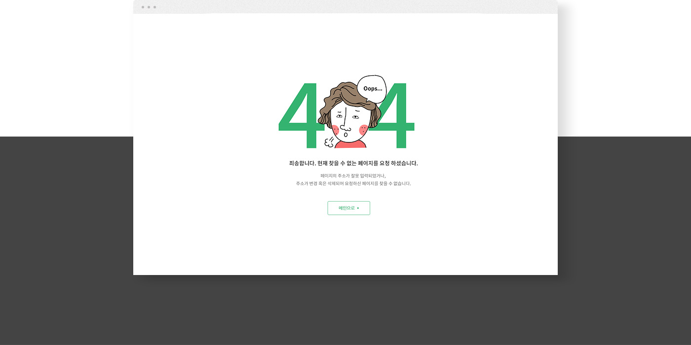 맞춤 제작 404페이지로 에러페이지에 대한 방문자의 스트레스와 이탈률을 줄였습니다.