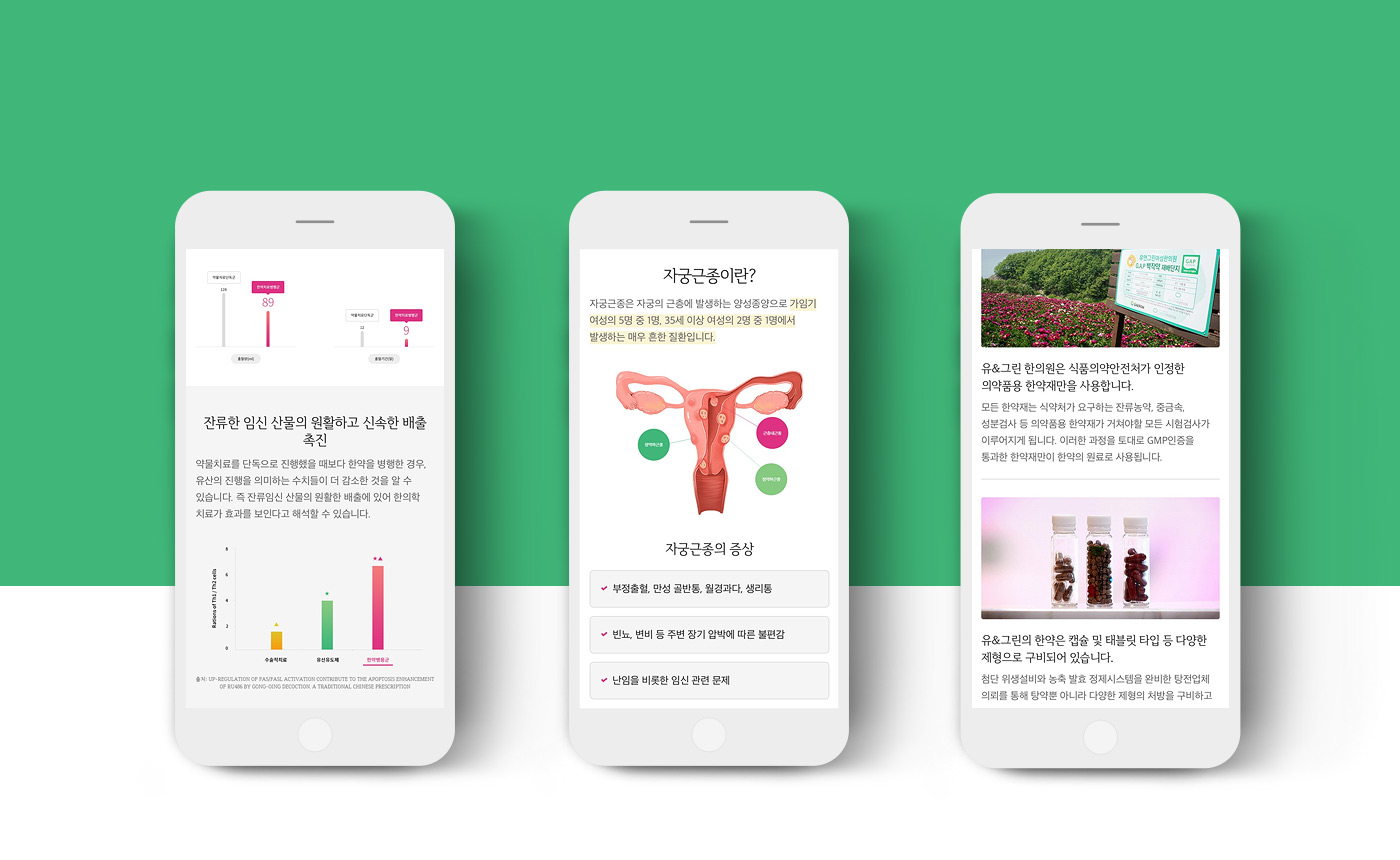 유앤그린한의원이 추구하는 진료철학, 가치 등 브랜드 아이덴티티를 홈페이지에 녹여내고자 하였습니다.