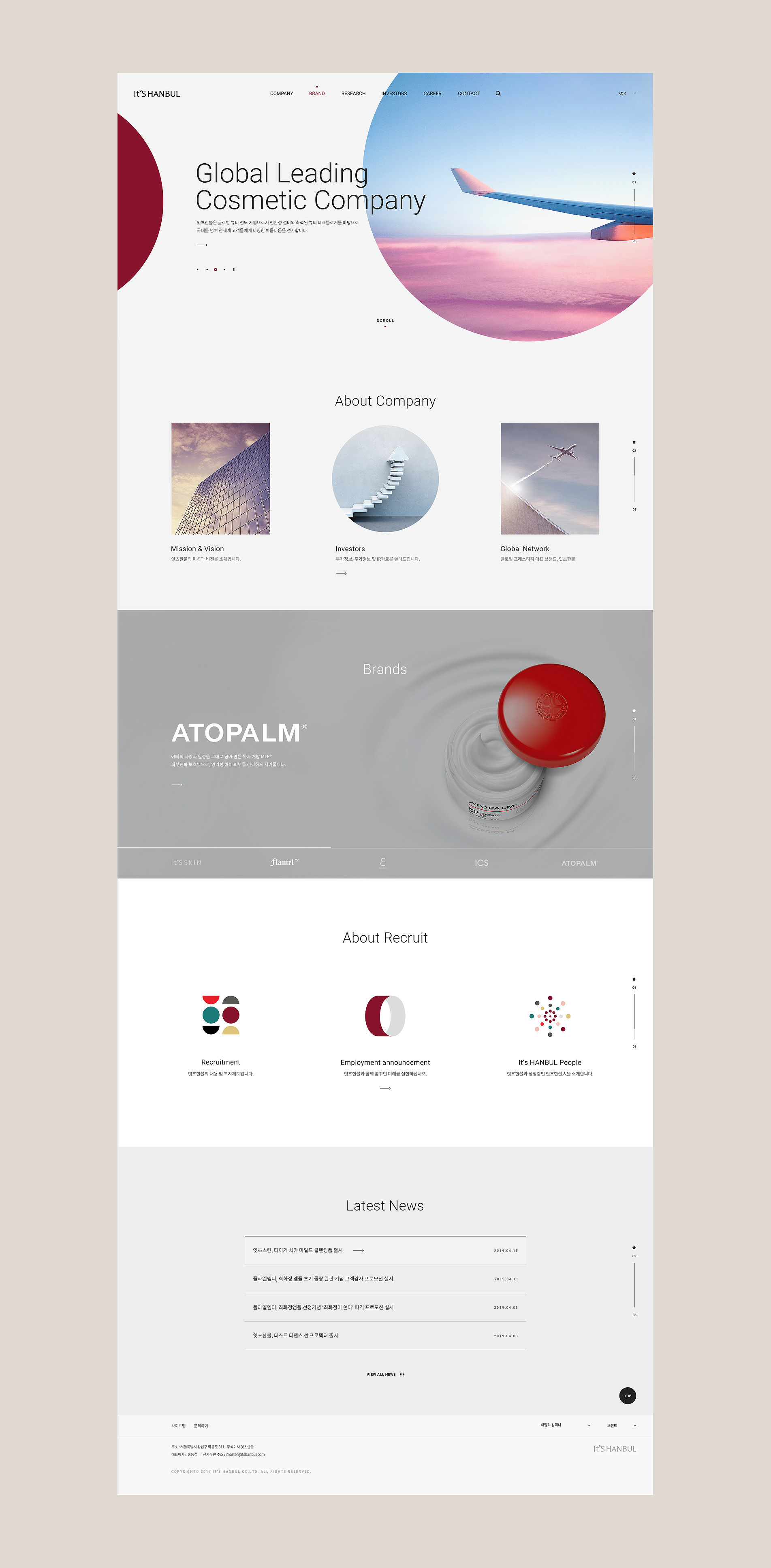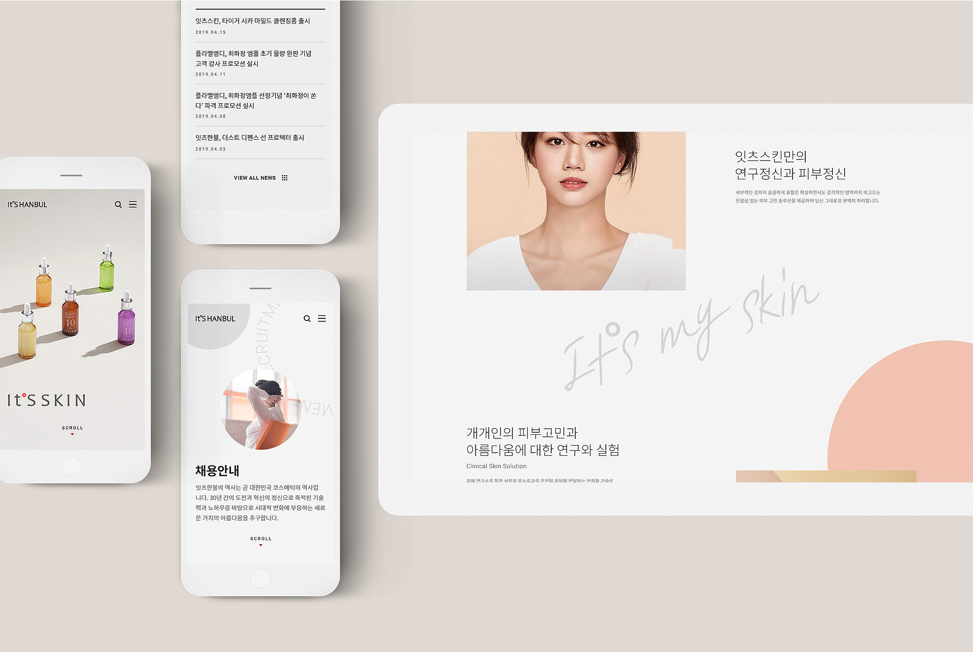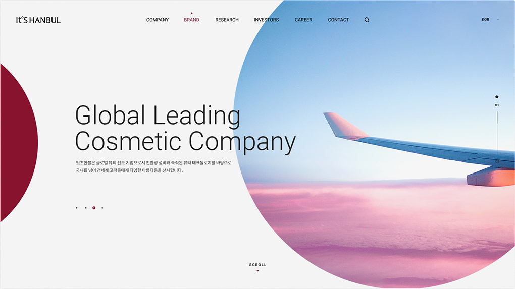 메인은 원스크롤 형식의 심플한 레이아웃으로 디자인하였습니다. 잇츠한불 로고 원에