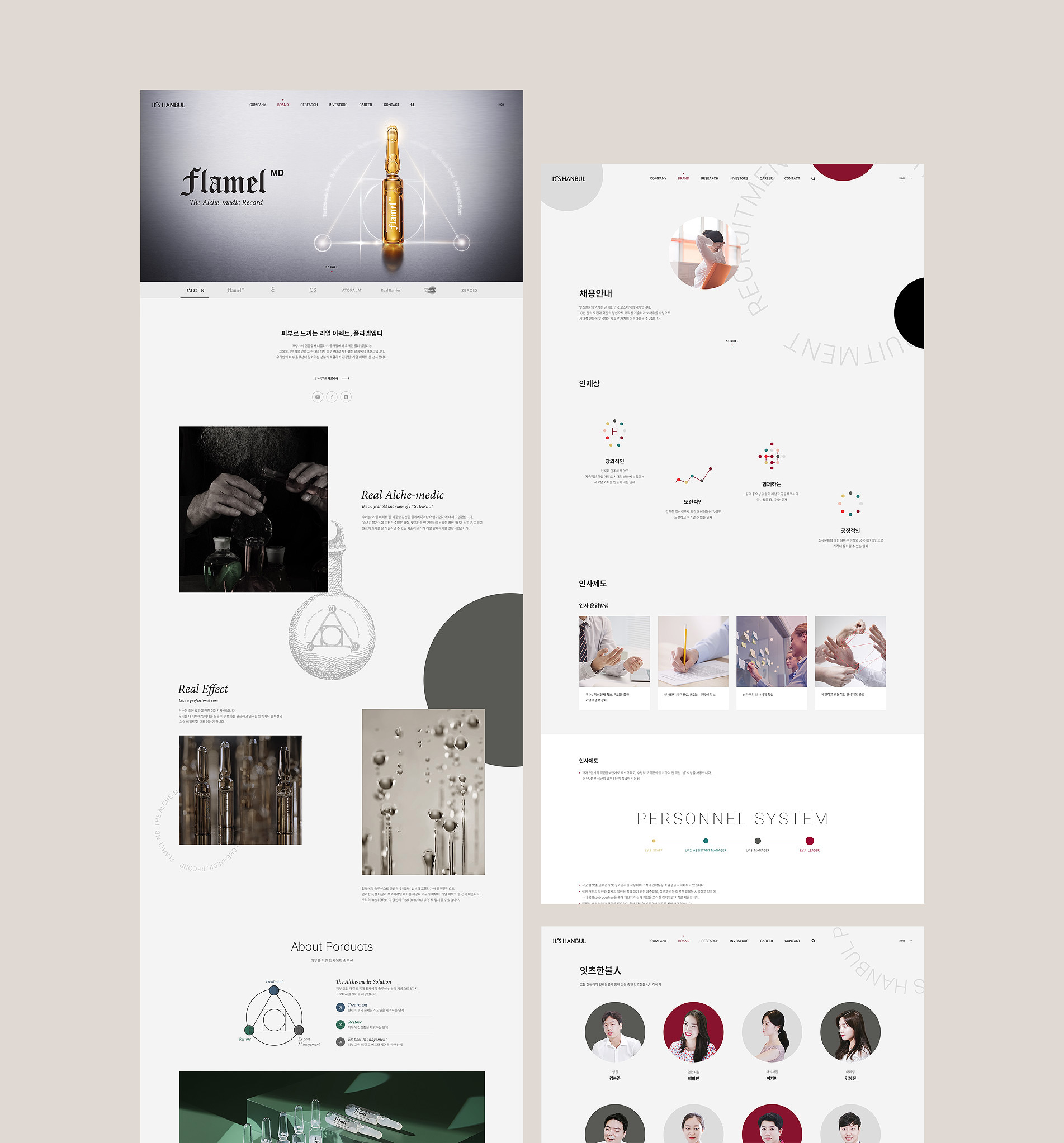 영감을 받아 메인 비주얼에 크게 원을 배치하였으며 페이지 전체에도 원을 포인트로 주었습니다.