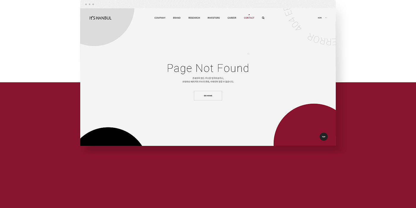맞춤 제작 404페이지로 에러페이지에 대한 방문자의 스트레스와 이탈률을 줄였습니다.