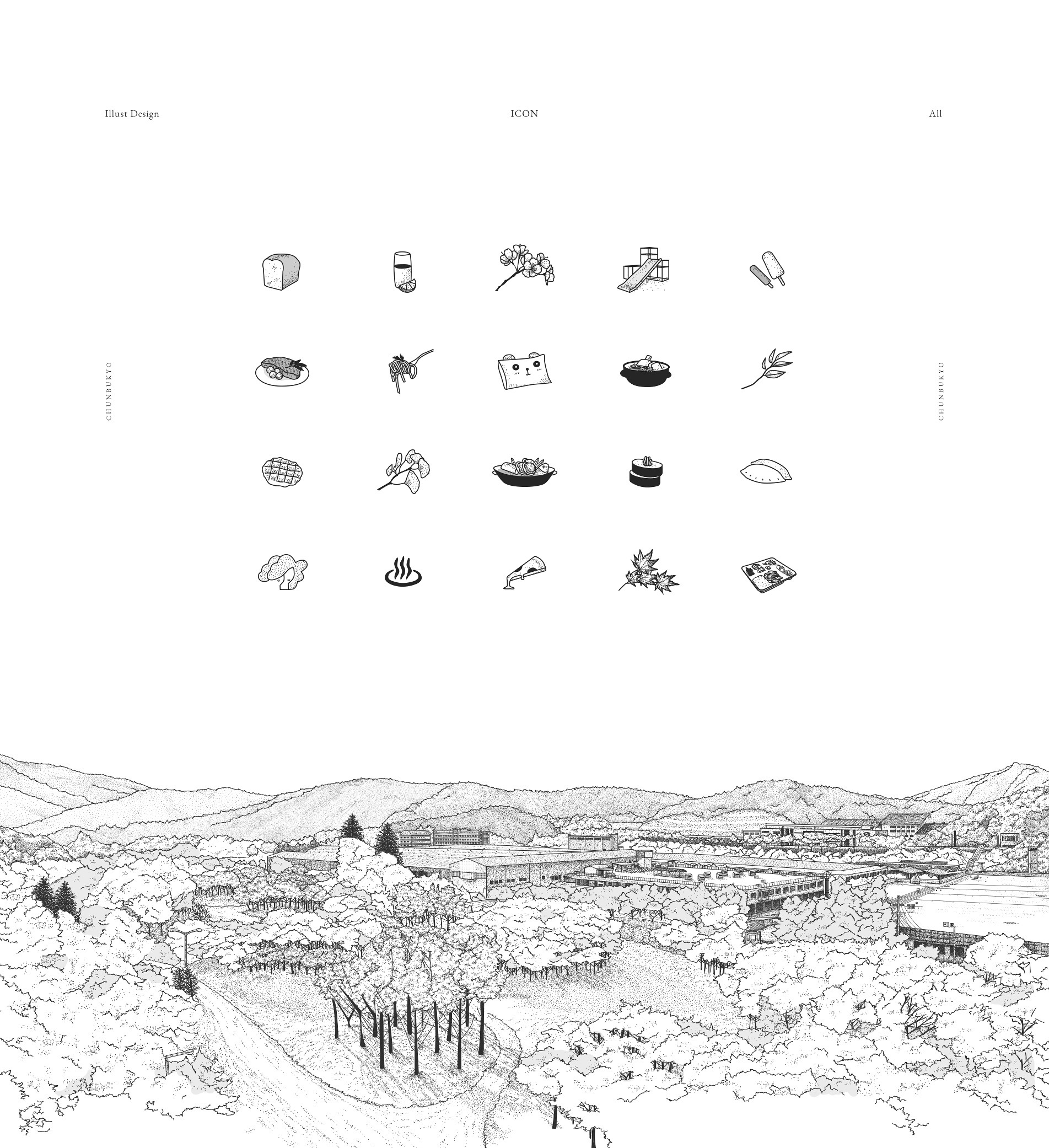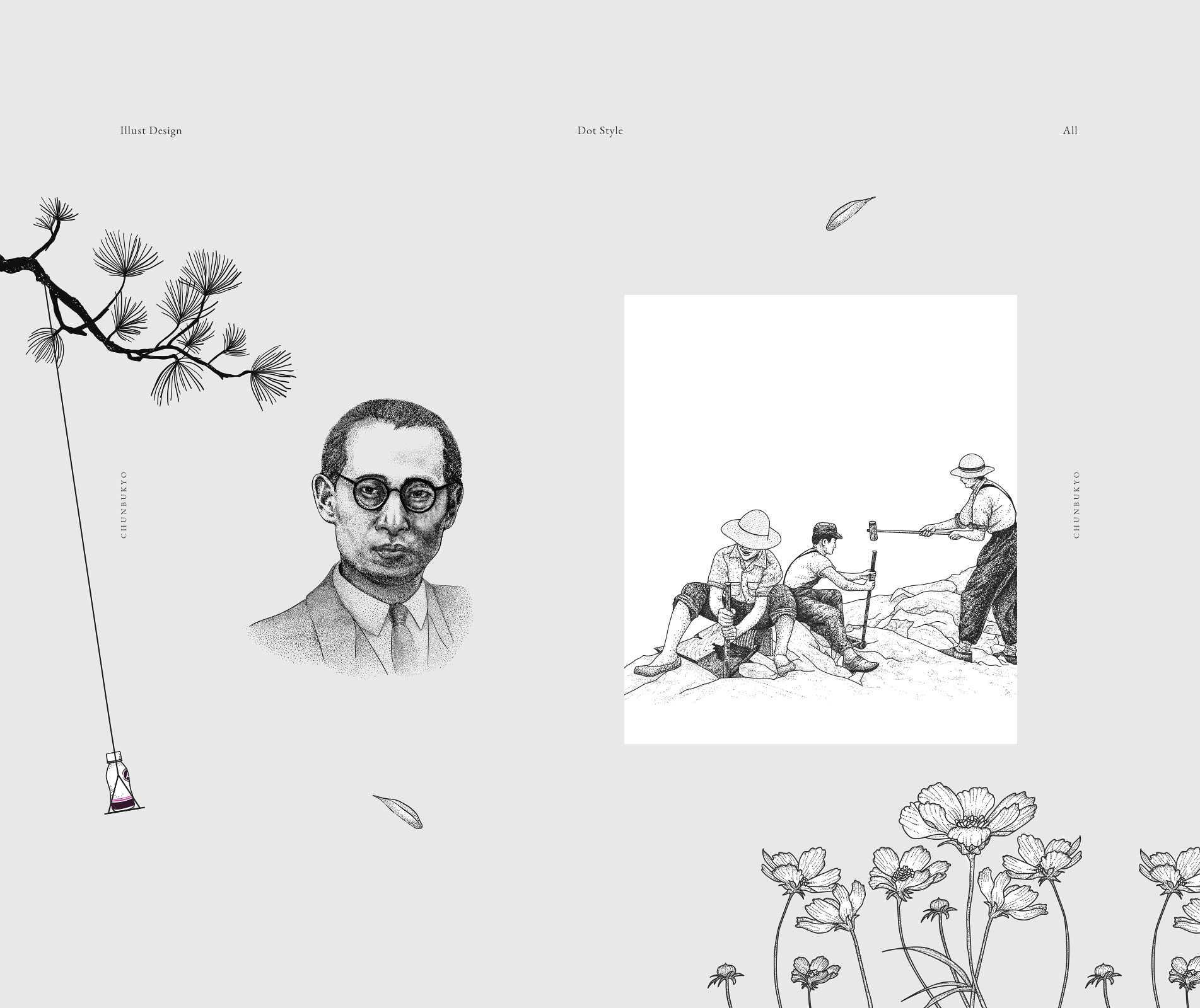천부교를 상징하는 다양한 요소를 한땀한땀 일러스트로 표현하여