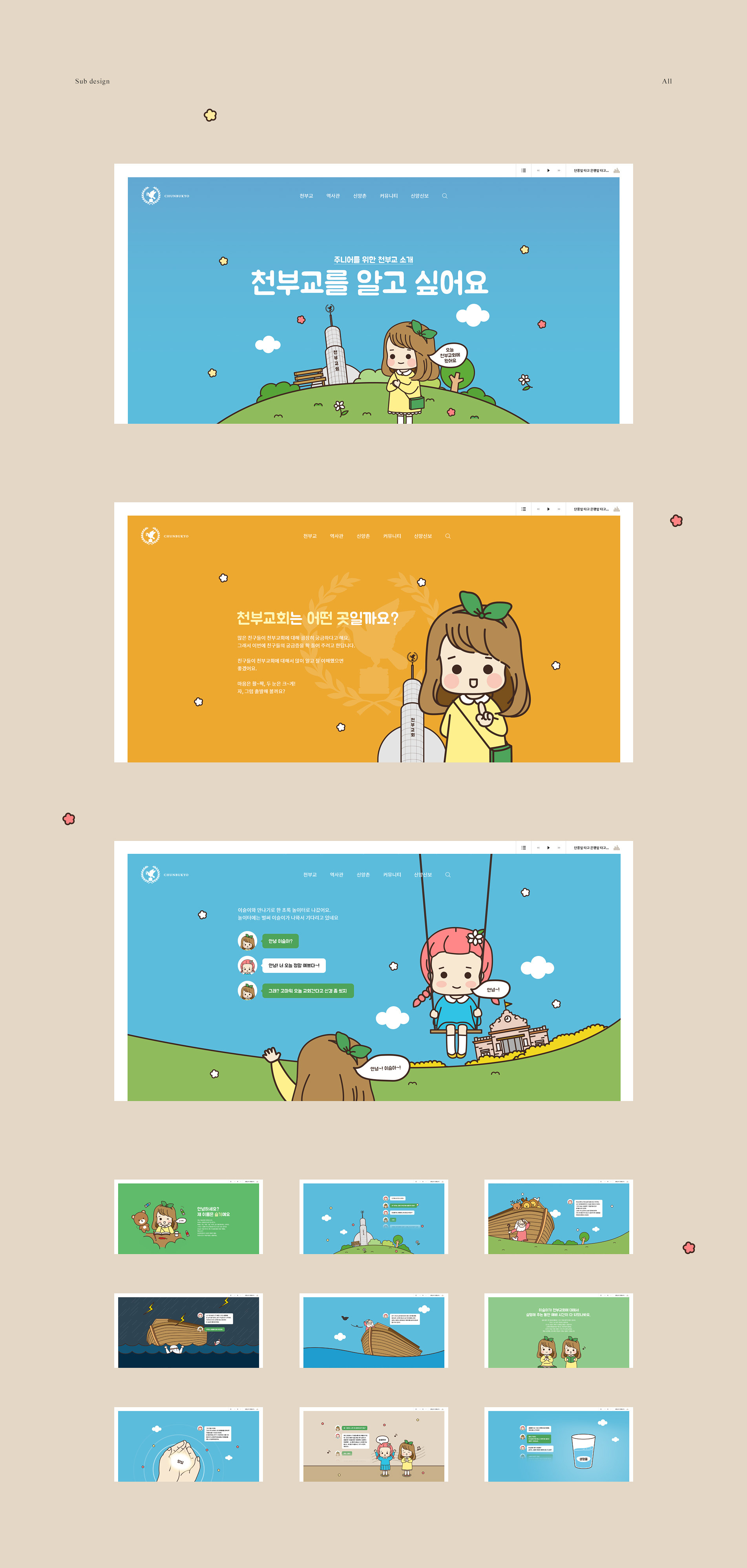 시각적 즐거움과 더불어 천부교가 낯선 사용자에게 친근하고 따뜻한 이미지를 심어줍니다.