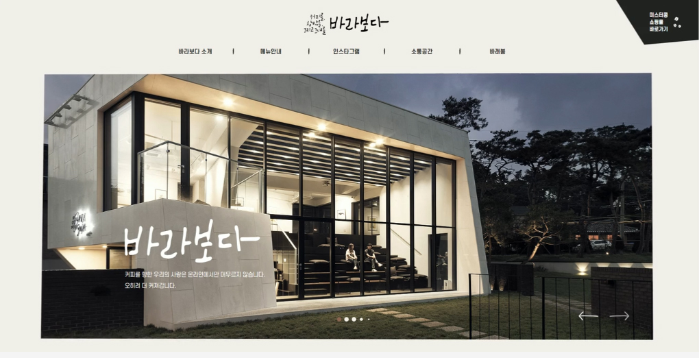 다녀와서도 건물의 모습을 많이 기억 하시리라 생각합니다. 하여 웹사이트에서 건물의 외형적인 사선모양을 아이덴티티로 삼아 디자인 하였고 각 요소에 들어간 일러스트는 실제 바라보다에 있는 쇼파나 상징적인 모습을 바탕으로 스케치하여 디자인 하였습니다. 중간중간 GIF애니메이션기법으로 소소한 재미를 연출하였습니다.