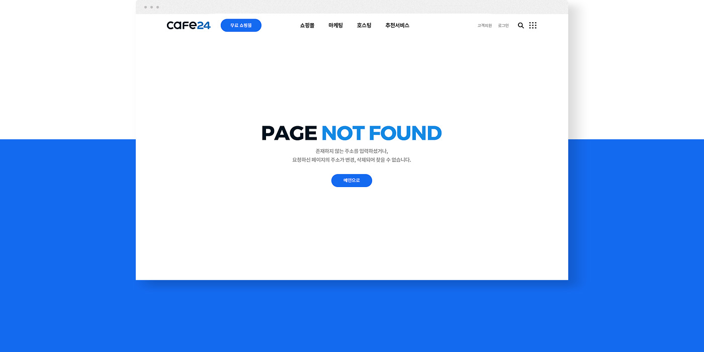 맞춤 제작 404페이지로 에러페이지에 대한 방문자의 스트레스와 이탈률을 줄였습니다.