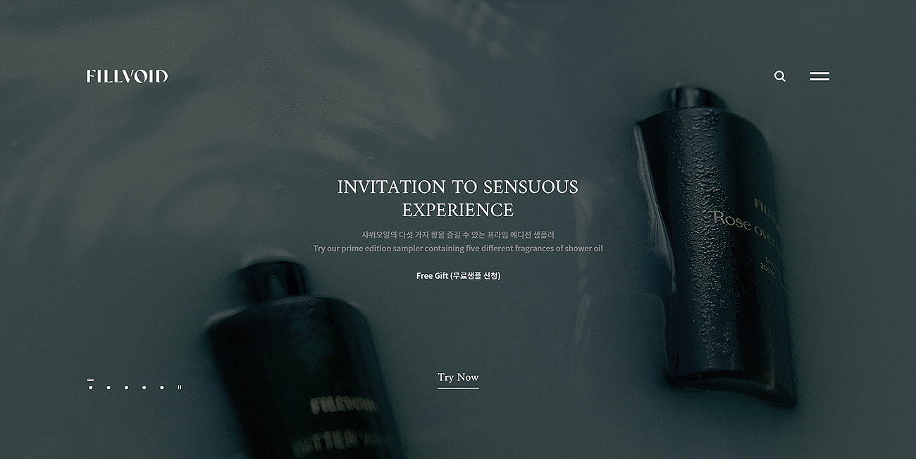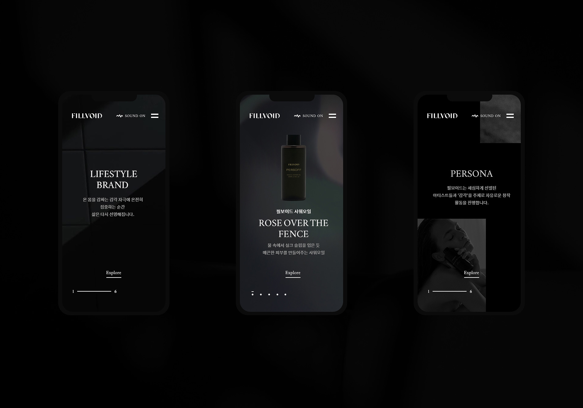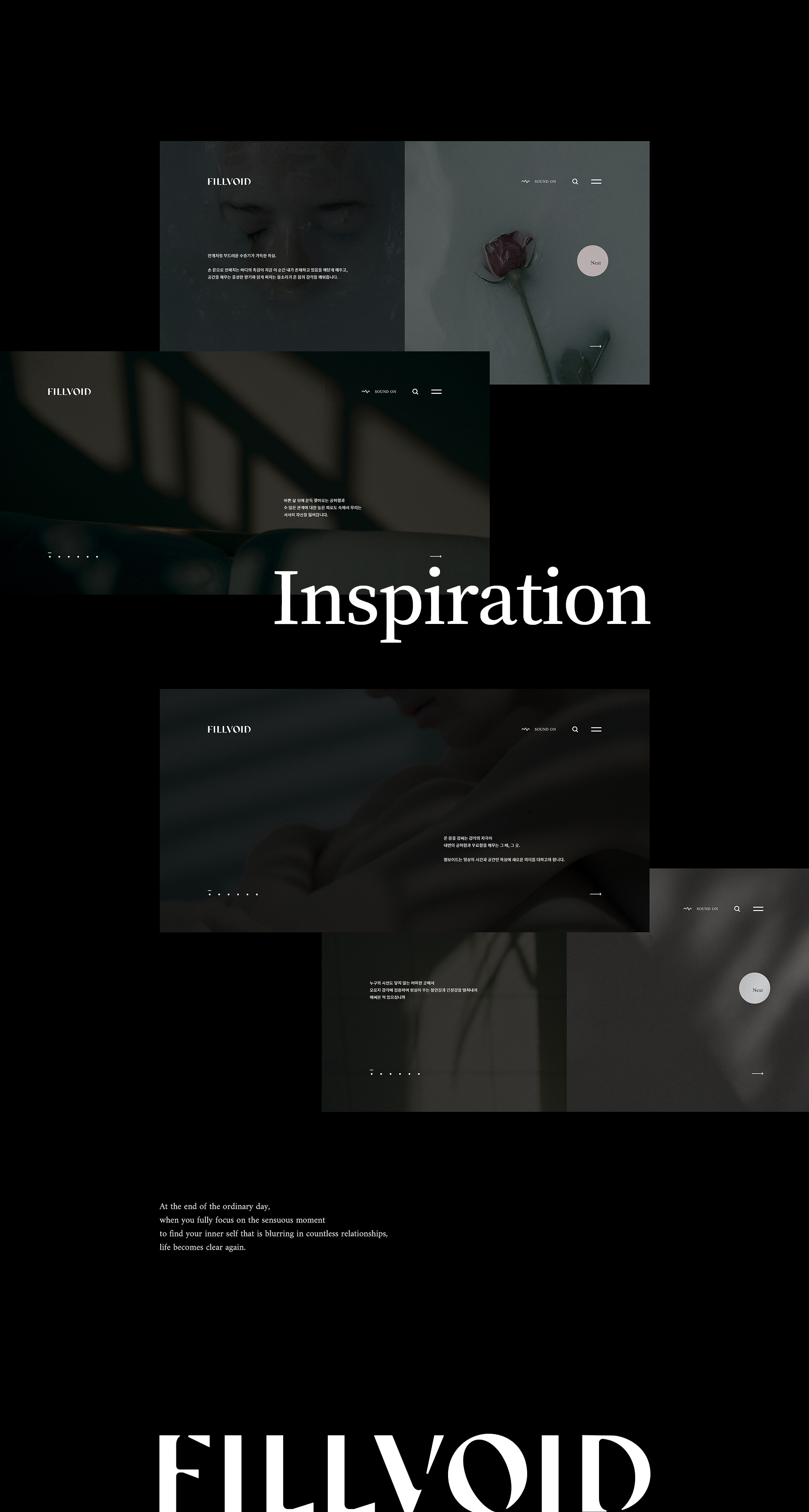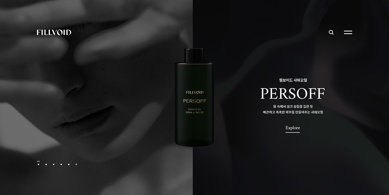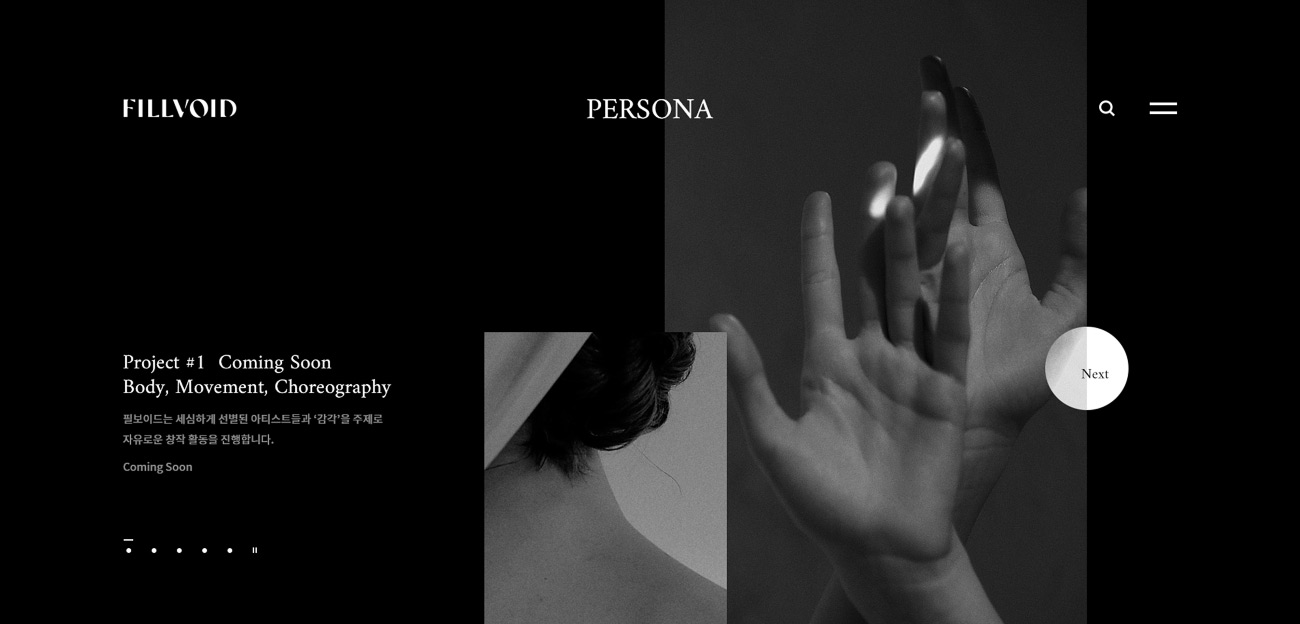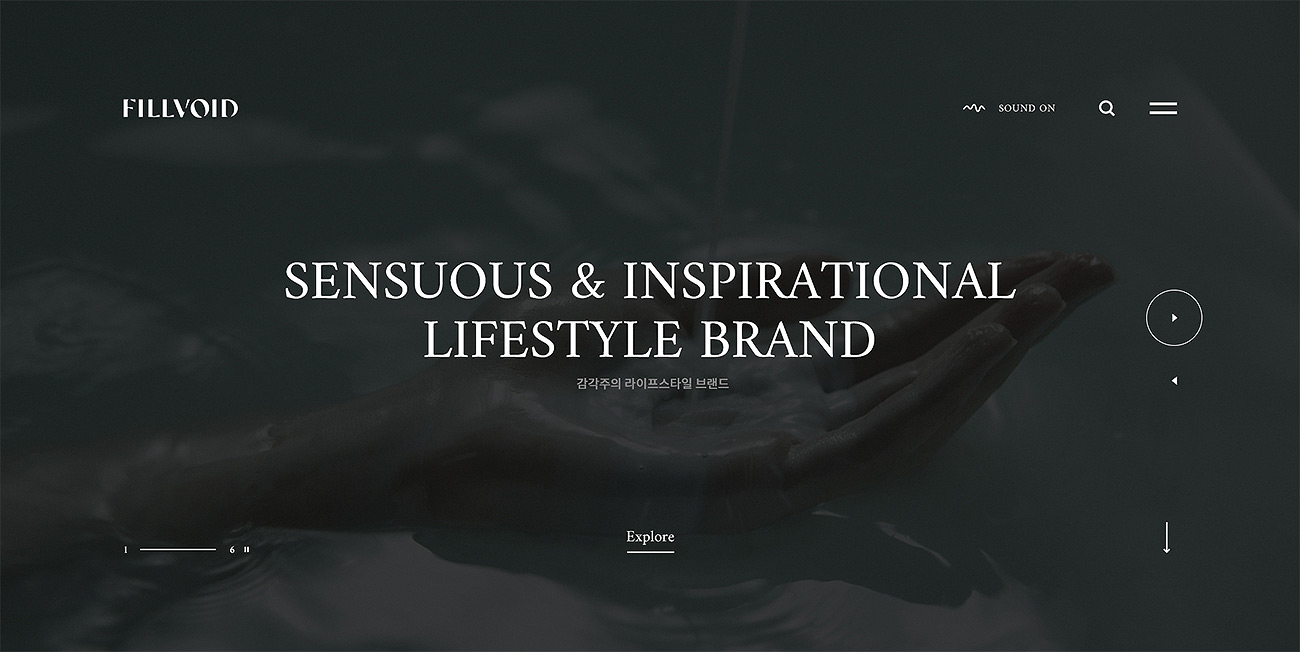 스크롤 한번에 다음 섹션으로 넘어가는 원스크롤의 형태이며. 몽환적인 음악과 감각적인 영상이
