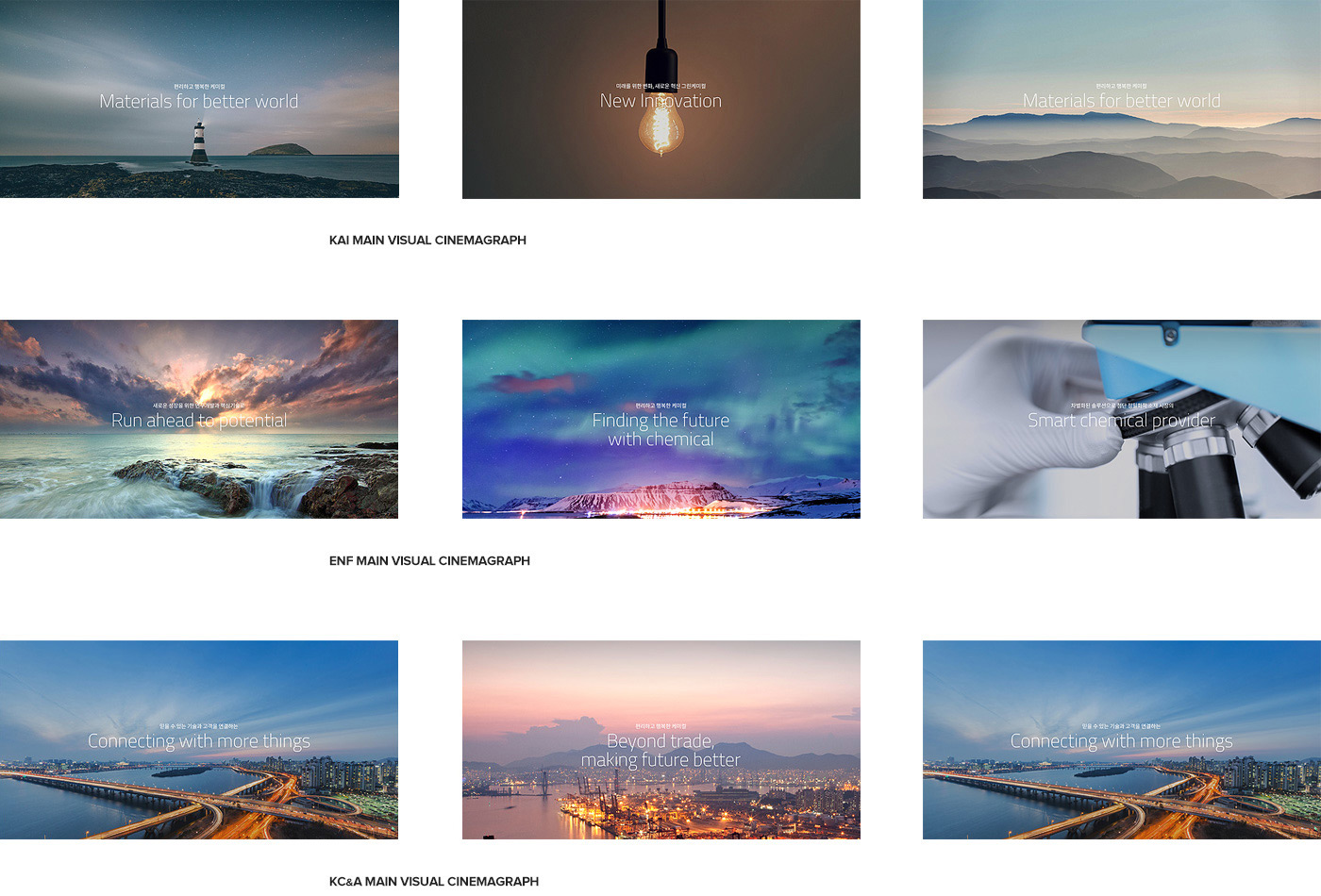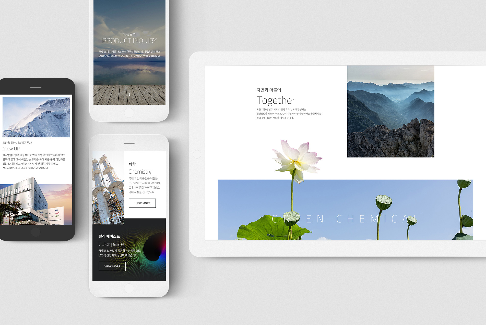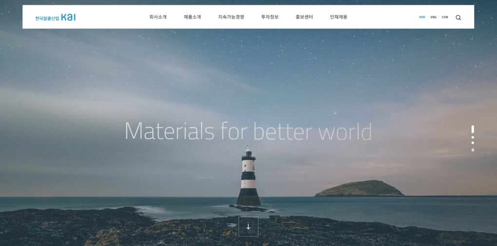 전체적인 톤&매너는한국알콜산업의 새로운 비전인 "혁신적 제품개발을 통한 Green Chemical의 Asia Leader"와 기업이미지를 잘 나타낼 수 있도록 세련되면서도 자연스럽고 친화적인 이미지가 내재되도록 하였습니다.