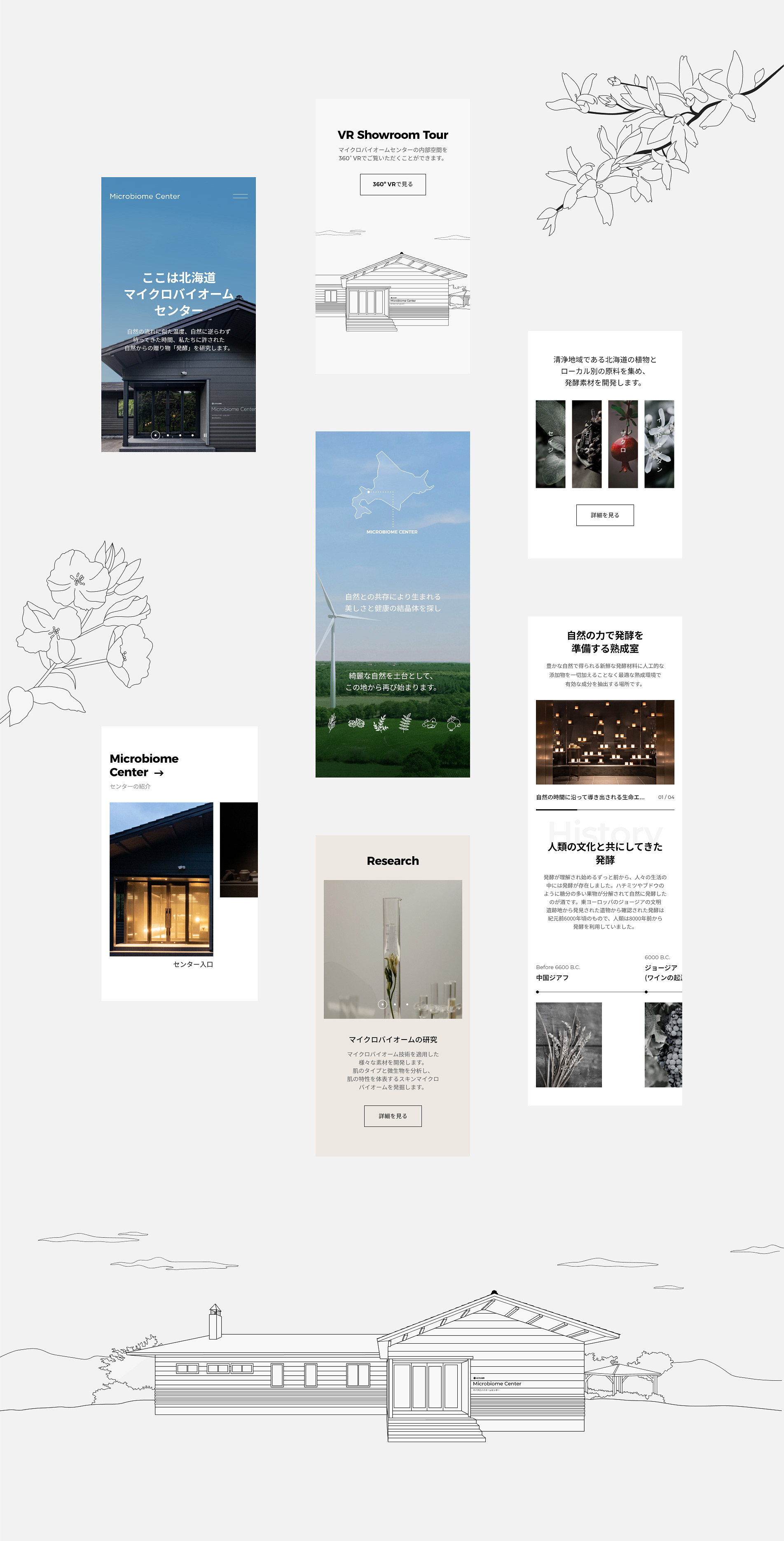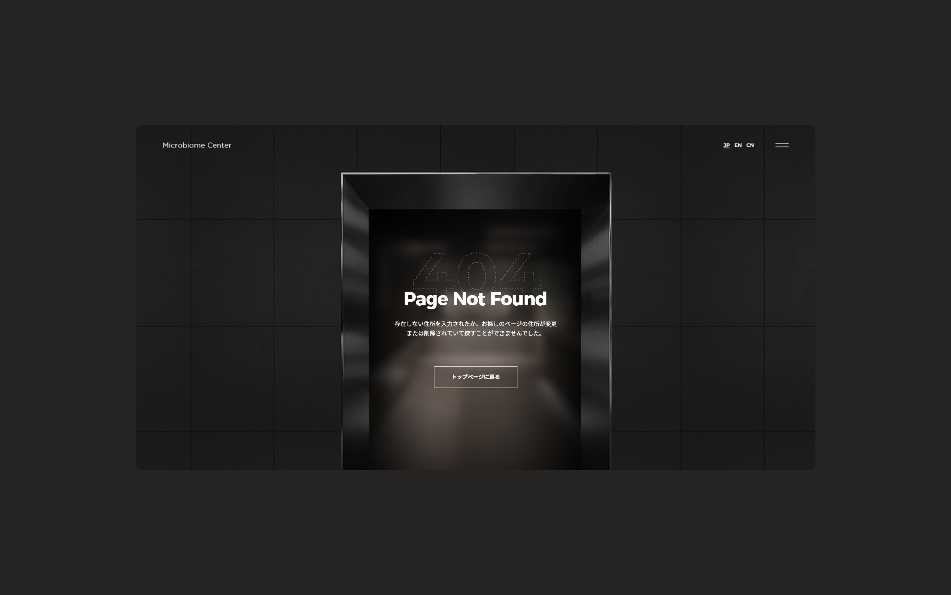마이크로바이옴 센터 외관 컬러와 전시실 조명을 모티브로 하여, 일본 특유의 감성과 센터의 고급스러운 모던함을 담아냈습니다. 온라인 쇼룸처럼 홈페이지 콘텐츠도 전시공간처럼 꾸며 센터에 온 것 같은 느낌을 주도록 했습니다.